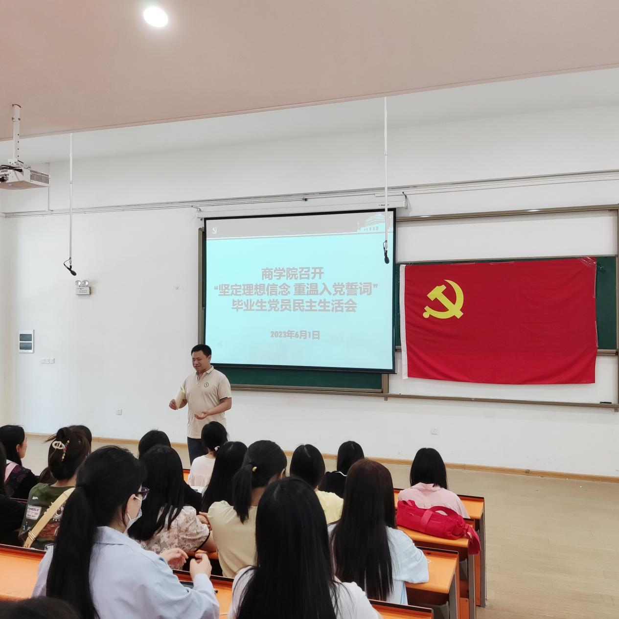 公司党委于6月1日中午在2号教学楼116教室,召开“坚定理想信念,重温入党誓词”毕业生党员民主生活会。此次会议由组织员李婉君老师主持,公司党委书记郭峰同志,太阳成集团122ccvip行政秘书兼团委书记郗艳花同志,太阳成集团122ccvip全体党支部书记、辅导员及全体毕业生党员出席了会议。