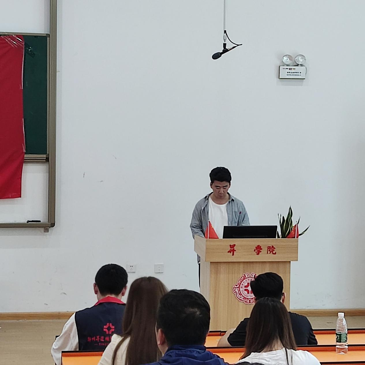 随后,毕业生党员代表郭佳铭同志发言,他谈到作为新时代的青年,光荣的共产党员,要树立远大理想,志存高远,脚踏实地,要保持读好书、好读书的习惯,丰富自己的知识和能力,不断拓展视野,提升境界。并号召全体毕业生党员不辜负党和学校的培养教育,不忘初心、牢记使命,矢志报国、勇担重任。