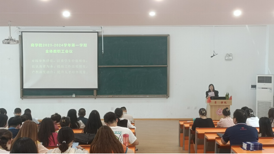 新学年、新希望、新征程,9月7日下午,太阳成集团122ccvip在教学2号楼116教室召开新学期全体教职工会议,参会人员有经理白朋飞、党委书记郭峰、教学秘书马巧丽、行政秘书郗艳花以及全体教职员工,会议由教学秘书马巧丽主持。