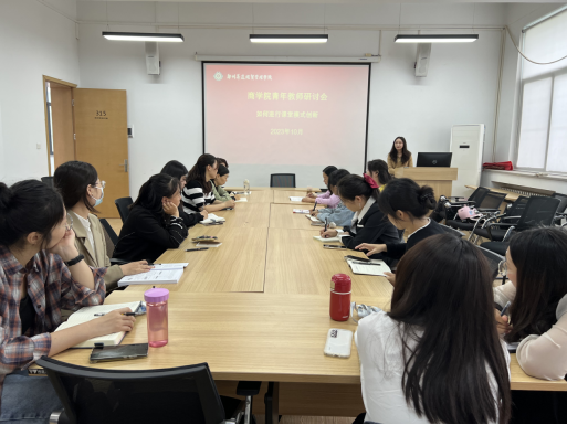 本次会议以“如何进行课堂模式创新”为主题。会议伊始,青年教师们简要讲述了目前的课堂教学模式,主要以课堂PPT演示、案例分析、讲授法及讨论互动等手段方式进行教学,目前的教学方式在调动员工课堂参与积极性存在一定问题,且不利于教师清楚地了解员工对知识点的掌握情况。其中有青年教师提到,校督导及学院督导教师在听课后曾鼓励青年教师们在站稳讲台的同时积极创新课堂教学模式,以青年教师的新风采和新水平来调动学习氛围。