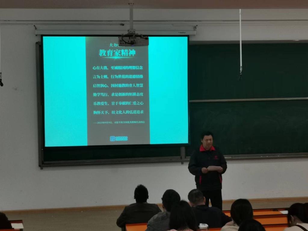 首先,郭峰书记带领全体教师深入学习习近平总书记教师节重要指示精神和习近平总书记在中央政治局第五次集体学习时的重要讲话精神。他强调,全体教师要深刻理解大力弘扬教育家精神的价值意蕴,也要系统把握大力弘扬教育家精神的内在要求,要牢记为党育人、为国育才初心使命,树立“躬耕教坛、强国有我”的志向和抱负,要坚持政治引领,努力钻研业务,做好师德表率,要始终胸怀大局,潜心做好教书育人工作。