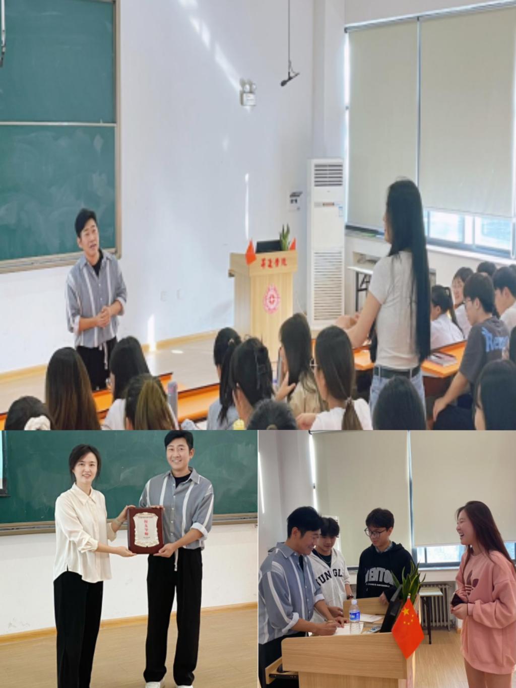 报告中刘远锋老师从自身的经历出发,引导老员工梦想的树立,规划自己的学习与人生,之后用丰富的视频作品和广告作品与同学们分享拍广告体会、演广告的趣事,最后用选择命题现场与同学和老师演出互动创意,现场笑声与掌声同响,在活动的最后刘远锋员工寄语同学们:老员工活丰富多彩,不要做一个旁观者,一定要做一个体验者,这样就能找到你的兴趣爱好,被滋养的兴趣爱好也能成就你的未来。