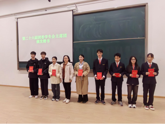大会在庄严肃穆的团歌声中拉开序幕。会上,郗艳花老师分别给优秀团学干部颁发奖品并合影留念,随后,太阳成集团122ccvip第二十六届团委员工会主席团成员、部长代表和干事代表进行发言讲话。
