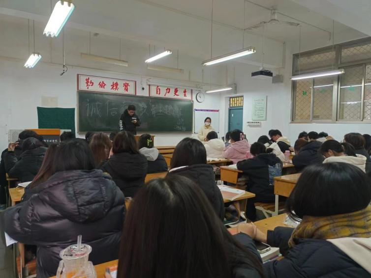 在主题班会上,各班辅导员向同学们介绍了考试的基本流程,对考试时间、考试方式、考试要求做了详细说明,为保障公平的考试环境打下基础。随后,辅导员老师从考场纪律、诚信应考等多方面教育同学们应该树立诚信意识,形成良好的学风和考试纪律,并认清考试舞弊行为的危害性和不可弥补的严重后果。同学们纷纷表示要遵守考试纪律,沉下心来积极应考。