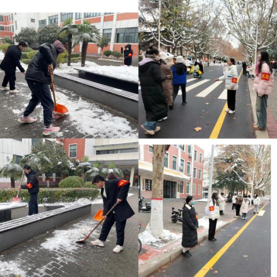 同时,为了确保同学们安全出行,预防意外事故的发生,支部党员还分布在学校各主要道路已经冻冰容易滑倒的路段,提醒过往同学谨慎慢行注意防滑,注意及时躲避来往车辆,骑自行车或电动车时必须减速慢行,避免路过的老师和同学滑倒摔伤,造成不必要的伤害。冬季天寒,雨雪天气频发,党支部党员同志还提醒过路的同学和老师注意防寒保暖,应多穿衣服,戴好手套、口罩,做好御寒保暖工作,雨雪天气路面湿滑,注意交通安全,尽量避免在校园内追逐、嬉戏、打闹,注意自身人身安全。