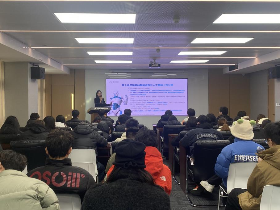 首先,科大讯飞运营部经理何巍向同学们讲解了科大讯飞企业的基本情况并带领同学参观了科大讯飞的产品展示区,并带领大家亲身体验了他们的语音识别、语音合成、语音评测等核心技术。这些产品在教育、医疗、金融等领域都有广泛的应用,让同学们对人工智能技术的实际应用有了更直观的认识。