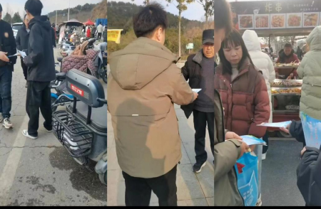 2月10日至2月25日期间,党支部志愿者分别在南阳南召县的公园、集市、庙会、景区等人员聚集地,通过反邪教宣传条幅,发放反邪教教育手册、讲解邪教特征和骗人手法,向群众揭露了邪教的本质与危害,宣传了如何抵制邪教的知识,还鼓励大家积极传播反邪教知识,达到一传十,十传百的效果。此次活动得到了当地群众的热烈反响和大力支持。