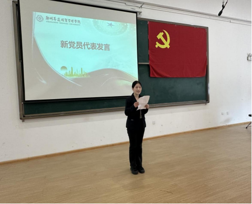 随后,郭峰同志发表讲话,他对新发展党员同志和参加本次党课的党课学院表示衷心的祝贺和欢迎,并对新发展党员提出三点要求:一是要加强理论学习,提高个人修养;二是要不忘初心,强化党员身份意识,锤炼党性修养;三是要发挥模范带头作用,带头学习、带头爱岗敬业、带头遵守法纪。