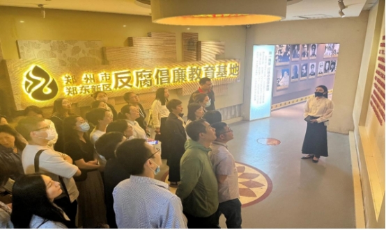 郑州市反腐倡廉教育基地突出党纪国法教育和案例警示教育两大主题,既有十八大以来党和国家关于党的作风建设、反腐倡廉建设的部署和规定,又有历代廉政建设的发展史、廉政制度,还有古今中外的廉政楷模、先进人物事迹,以及近年来查处的大量触目惊心的典型腐败案例,全方位展示了腐败给党和国家、社会、家庭及个人带来的巨大危害。现场学习的尾声,全体党员重温入党誓词,进一步坚定理想信念,永葆清正廉洁的政治本色。