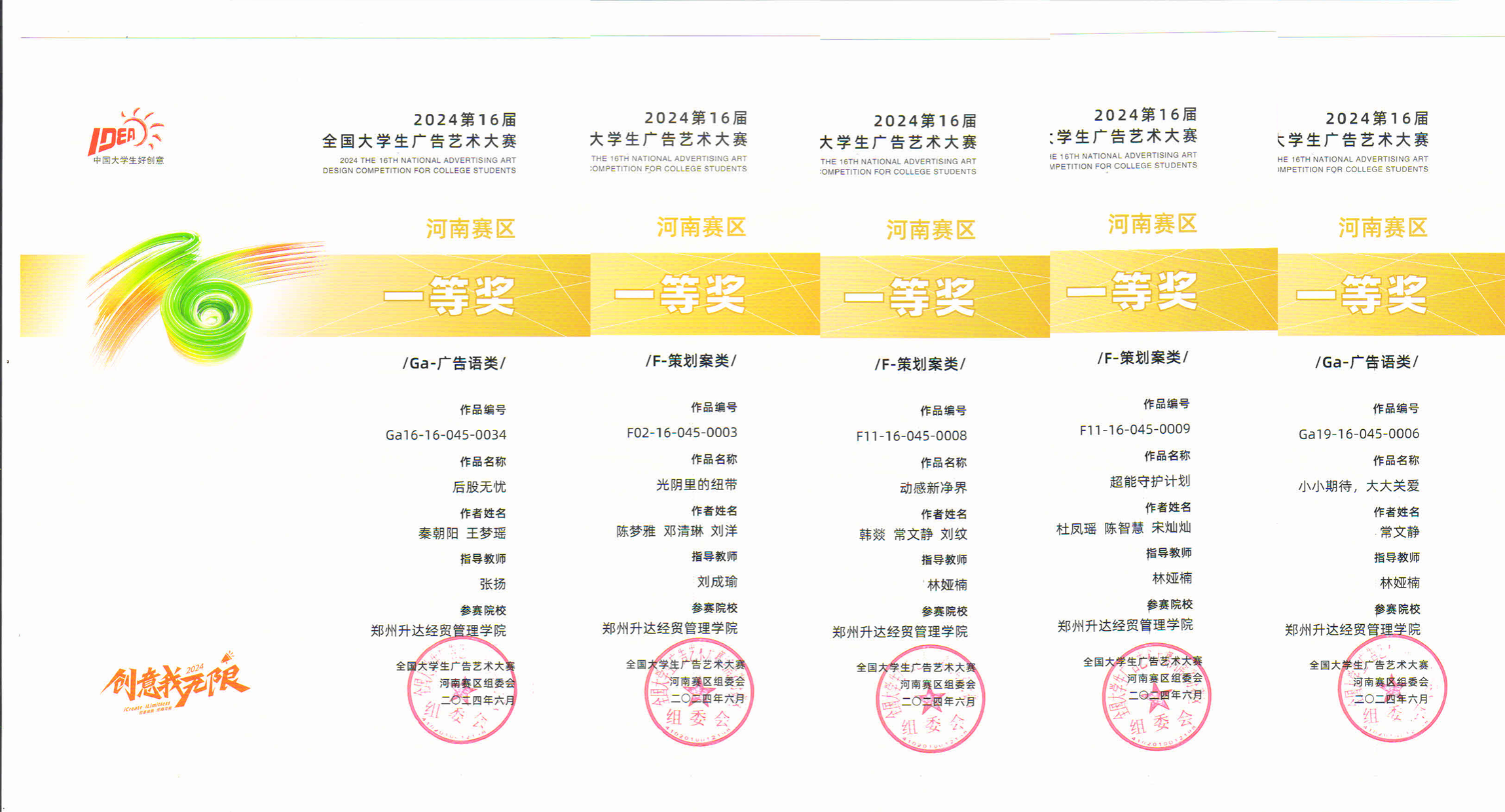 第十六届全国老员工广告艺术大赛河南省赛中升达学子再创佳绩