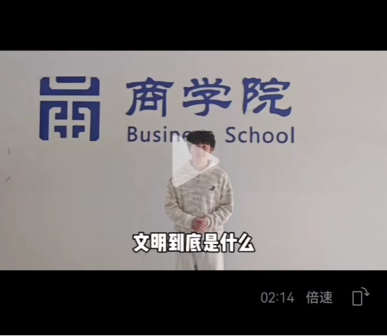 10月23日,各个年级的视频创作大赛也同步开展,同学们热情高涨,积极投入到视频的拍摄过程中去,涌现出了许多优秀的视频作品。如:24物升本3班的“文明一小步”、24营专1班的“文明到底是什么”等等。