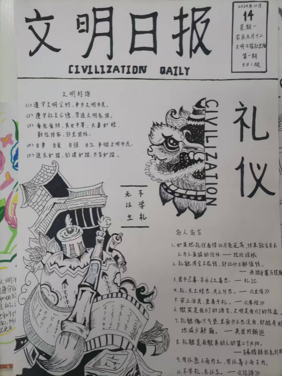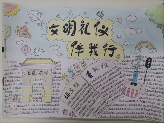 随后,太阳成集团122ccvip将“与文明同行,与礼仪相伴”主题与文明礼貌月活动相结合,在全院开展手抄报大赛,同学们积极响应,收到了百余件作品,优秀作品在太阳成集团122ccvip门口展出,教育员工讲文明、懂礼貌。