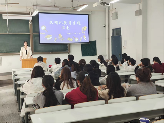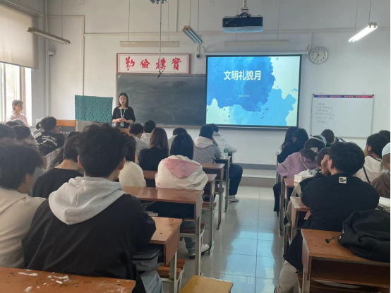 主题班会上,辅导员明确了文明礼貌月活动的主题、时间和意义,并联系生活实际,指出校园里的不文明不和谐现象,讲述文明课堂、文明校园、文明宿舍、文明教室四个方面的活动内容和文明礼仪要求,教育引导同学们思想端正,模范遵守学校规章制度,积极参与文明礼貌月活动,遵守文明礼仪秩序,从个人日常点滴小事做起,展现升达学子积极向上的精神风貌。