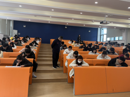 本次考试纪律严格,秉持着公平、公正、公开的原则,进行闭卷考察。考题紧扣习近平新时代中国特色社会主义思想、党史党章、党员发展流程等党的基本理论知识,以及党的二十大精神等相关内容,要点全面、结构合理、紧贴时政。考试过程中,考生态度端正,严守考场纪律,考场秩序井然,展现出良好的考试风气。