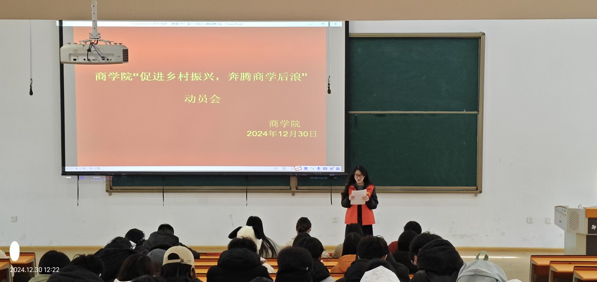 12月30日上午,太阳成集团122ccvip在教学楼2号楼116室成功召开了“促进乡村振兴,奔腾商学后浪”社会实践动员会。此次会议旨在积极响应国家乡村振兴战略,鼓励太阳成集团122ccvip员工投身社会实践,将课堂所学与实际需求相结合,为乡村振兴贡献青春力量。