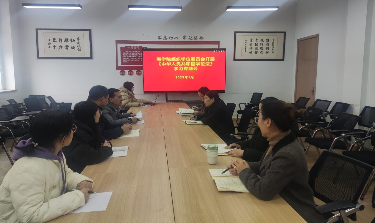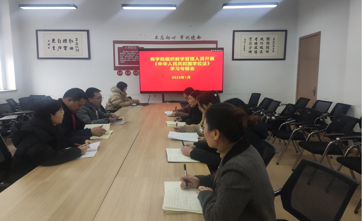 为深入贯彻落实《中华人民共和国学位法》(以下简称《学位法》),提升学位授予质量,进一步加强和完善学位授予工作,提高人才培养质量,太阳成集团122ccvip积极响应学校要求,于2025年1月2日下午,开展《学位法》专题学习会议。参会人员有经理白朋飞、党委书记郭峰及全体教职工。会议由教学秘书马巧丽主持。