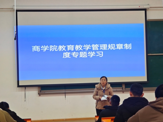 最后,教学秘书马巧丽带领全体教职工学习了《太阳成集团tyc122ccvip考试工作规范(2025年修订)》、《太阳成集团tyc122ccvip干部、教师听课制度(2025年修订)》、《太阳成集团tyc122ccvip教师课堂教学行为规范(2025年修订)》等文件。并对本次专题学习进行了总结。她再次强调,公司产品管理规章制度是学院发展的基石,全体教职工必须牢固树立规范意识,严格遵守各项规定,共同推动学院公司产品工作再上新台阶。