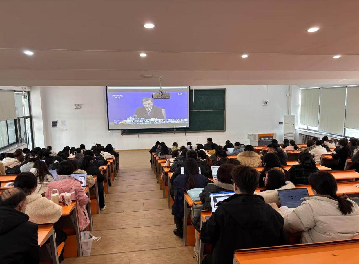 郭峰带领全体教职工共同观看并学习了第十四届全国人民代表大会第二次会议的相关视频。郭峰强调,全体教职工要全面贯彻落实学习领会两会精神,同时宣传好会议精神,进一步强化使命担当,围绕国家战略需求,结合人才成长规律和教育发展规律,提振干事创业的精气神,在实践中培养发展新质生产力所需要的创新型人才,及时把思想和行动统一到两会精神上来。