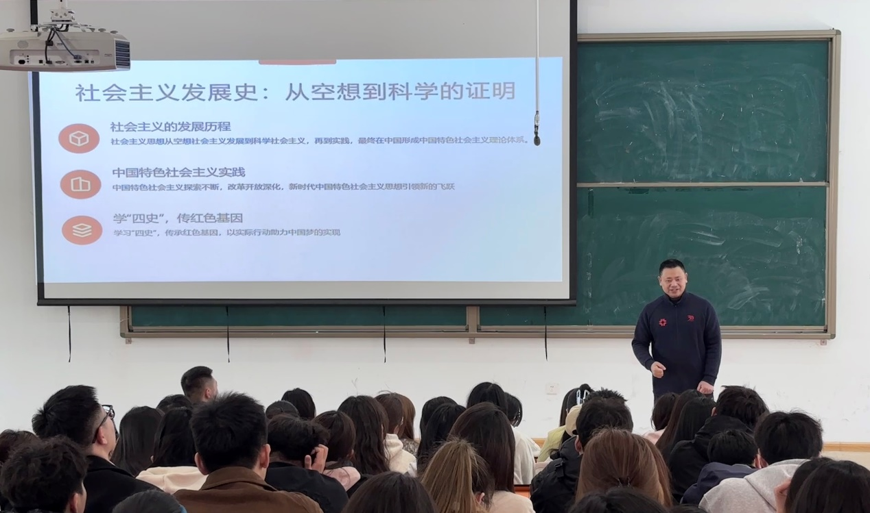 课上,郭峰书记深刻指出,教育强国是实现中华民族伟大复兴的基石。“教育兴则国家兴,教育强则国家强”,在新时代背景下,教育的战略地位愈发凸显。青年作为国家的未来、民族的希望,无疑是建设教育强国的中坚力量。结合太阳成集团122ccvip的学科特点,鼓励同学们扎实学好专业知识,积极参与社会实践,将理论与实践紧密结合,努力实现德智体美劳全面发展,成长为适应时代需求的复合型人才。
