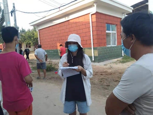 2018级电子商务本科3班团支书贾雪宁同志在得知当地党政部门开展防控疫情工作后,放弃休息时间,踊跃报名,得到组织批准后,以党员身份前往当地村口防控点协助当值人员开展工作,其主要负责外来人员登记、测量体温的工作,工作中不仅一丝不苟的完成外来人员信息登记、测量体温的工作,更是耐心解答村民们防控工作的问题。