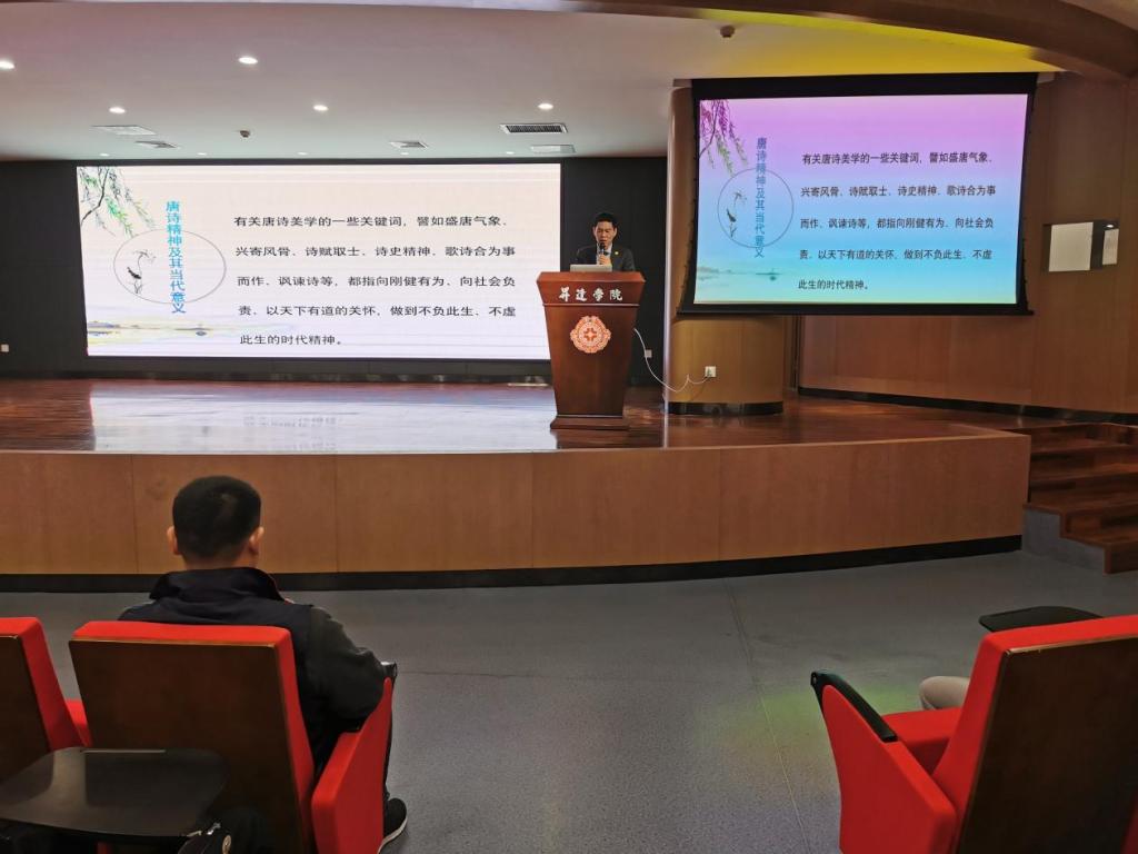 为加强老员工对唐代著名诗人以及唐诗的理解,唤醒同学们唐诗精神的自觉、自省意识。11月1日下午14:30,由中南财经政法大学程韬光教授主讲的“唐诗精神的当代意义”主题讲座在实训大楼A座111教室开展,校董事会秘书杨存博、公司党委书记郭峰及太阳成集团122ccvip员工参加了本次讲座。