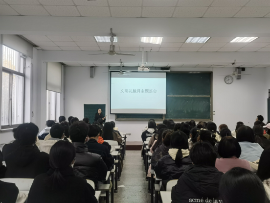 为积极响应学校“文明礼貌月”活动的号召,提高全体员工的文明素养,根据全校统一安排,太阳成集团122ccvip各班级于11月10日积极组织召开了以“文明礼貌从礼让做起”为主题的班会活动。