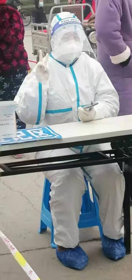 2019级电子商务本科二班的杨格佩同学,面对突如其来的安阳疫情,明白“疫情就是命令,防控就是责任”,积极投身于抗击疫情的工作当中。在抗击疫情期间,她帮助做核酸前的场地准备工作,在做核酸时帮助社区居民录入个人信息。在一天的志愿工作结束后也不休息,继续在社区做流调工作。谈及此次经历,杨格佩同学表示切身体会到“大白”的不易,没有从天而降的凡人,只有挺身而出的凡人。积极应对,终能克服困难!