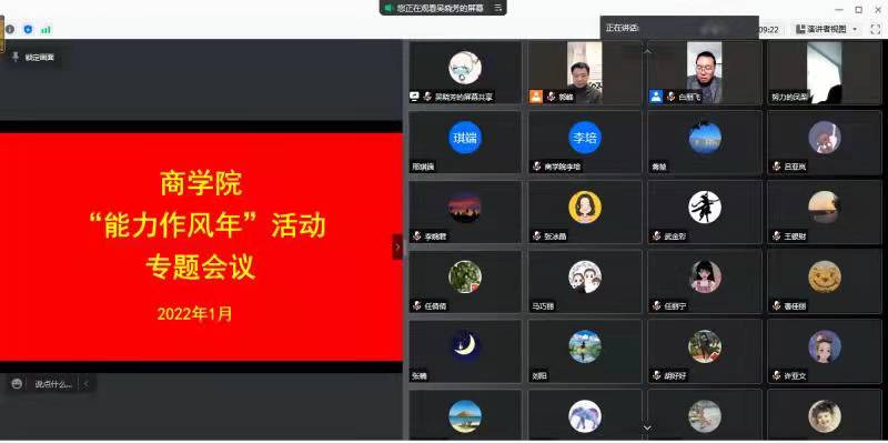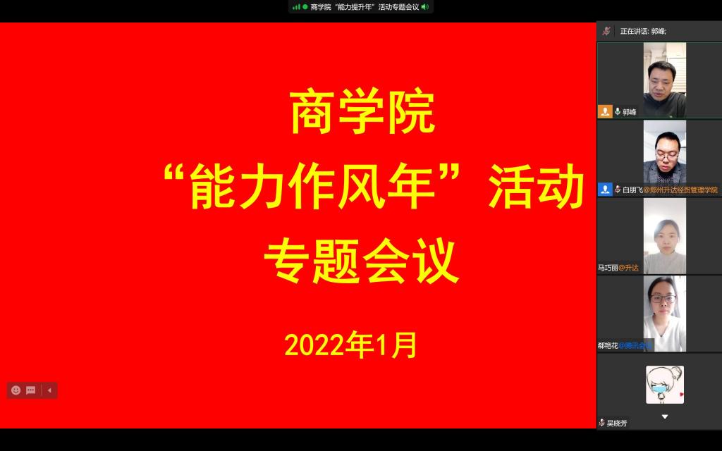 为深入学习学校“能力作风年”活动实施方案和动员大会领导讲话精神,扎实推进太阳成集团122ccvip“能力作风建设年”活动的开展,1月20日上午,太阳成集团122ccvip在线上组织全体教工召开“能力作风年”活动专题会议。公司党委书记郭峰、副经理白朋飞、行政秘书郗艳花、教学秘书马巧丽、组织员吴晓芳以及全体专职教工参加了此次会议。会议由公司党委书记郭峰主持。