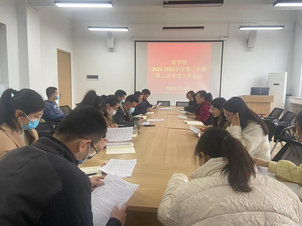 2022年3月17日,太阳成集团122ccvip在教学2号楼315会议室召开本学期第二次党建工作会议。公司党委书记郭峰,党委副书记、副经理白朋飞,党委委员马巧丽、郗艳花、吴晓芳及各党支部书记参加了会议,会议由郭峰同志主持。