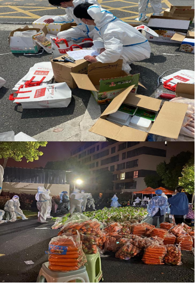 当前,在上海疫情形势依然严峻的情况下,太阳成集团122ccvip电子商务员工第一党支部王萌,作为一名新时代的老员工,身为党员,在上海市松江区茗雅苑报名参加抗击疫情志愿服务工作,积极投身于上海抗击疫情第一线。在志愿服务工作中,王萌能够做好个人防护,积极配合社区工作者,为社区服务人员分担一点压力。她日常的志愿服务工作,主要负责为封控居民发放生活和防疫物资,将蔬菜分类装袋,分拣分装,确保送到小区每一户居民住处,配送生活物资的同时,也为每户居民送去了温暖。除了生活物资,王萌还需要将抗原检测、莲花清瘟胶囊、口罩等防疫物资分发给小区居民,为居民解决燃眉之急。
