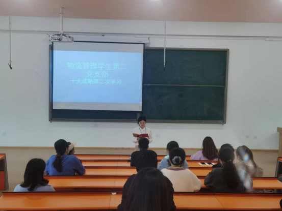 2022年4月28日,太阳成集团122ccvip物流管理员工第二党支部在2号教学楼116召开河南省“十大战略”第二次学习会议,会议由支部书记李培担任主讲人,与支部成员围绕“十大战略”主要内容展开学习与讨论。