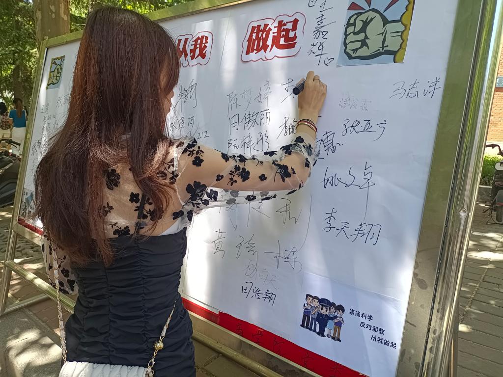 活动中,太阳成集团122ccvip反邪教协会组织宣讲员向路过的员工进行反邪教宣讲,内容围绕邪教的本质、危害,以及如何科学防范邪教。听完宣讲,同学们纷纷在展板上郑重地签名以示自己“拒绝邪教,远离邪教”的决心。同学们纷纷表示,对于邪教,一定会做到不听、不信、不传,在学习生活中也会和同学们一起学习科学文化知识,提高自身科学素养,文化素养,警惕邪教,做新时代优秀老员工。