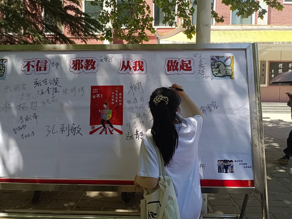 此次活动的开展,不仅帮助同学们形成崇尚科学、远离邪教的思想意识,树立正确的世界观、人生观、价值观,也为创建“文明、平安、和谐、稳定”校园提供有力的安全保障。