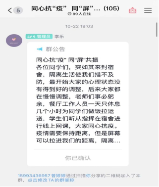 在活动初期,联络服务部分工明确,联系各班班长团支书,迅速完成宣传工作,建立相关活动群聊并发送群公告、注意事项等必要信息。在活动期间,许多同学积极主动上传作品,形式多样,包括宿舍巴黎时装秀、利用剩余米饭做糍粑、快乐手工等,为枯燥的封寝生活增添欢乐。最后,联络服务部整理挑选了符合活动主题和内容积极向上的作品并对其进行评选。