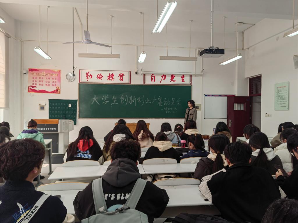 辅导员老师从大赛的意义、大赛的报名与准备、大赛的赛程设置、大赛选题、申报书撰写、大赛奖励等方面进行了详细讲解。