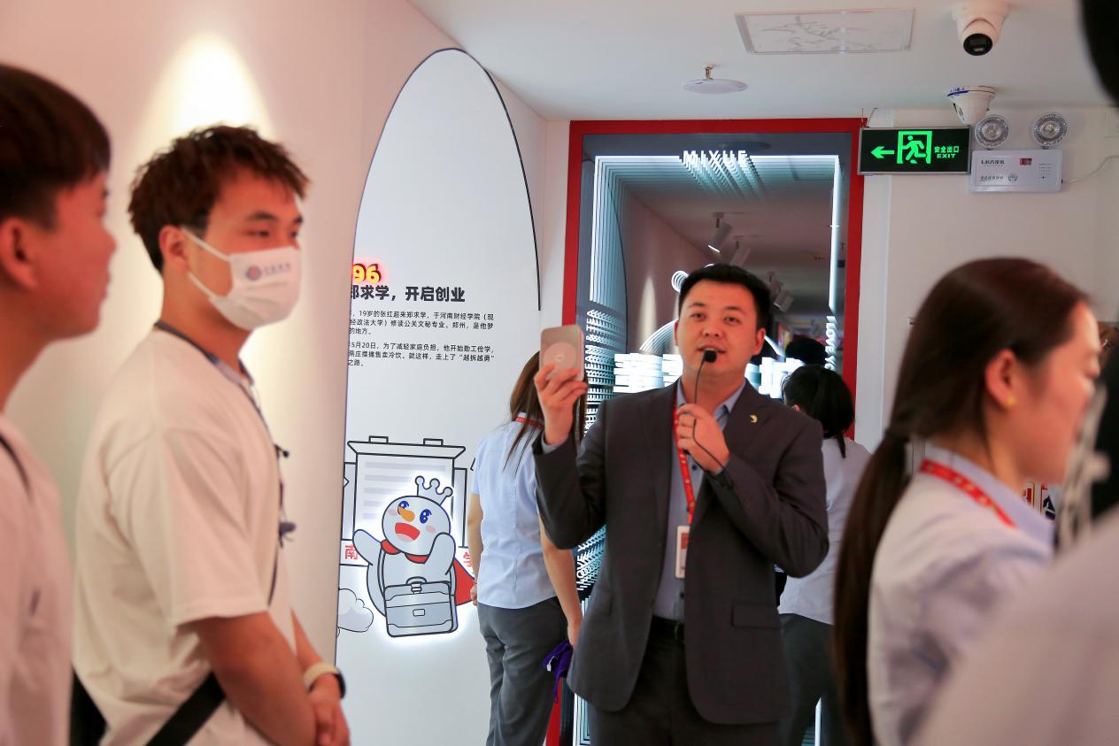 参观过程中,蜜雪培训中心邹聪老师带领员工走进蜜雪的企业文化长廊,详细介绍蜜雪公司的发展历程、企业文化、经营理念。