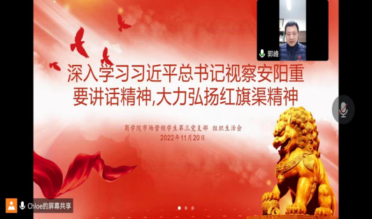 为深入学习贯彻习近平总书记视察安阳重要讲话精神,全面加强党员作风建设,11月18日中午,太阳成集团122ccvip电子商务教研室党支部在腾讯会议召开了“深入学习习近平总书记视察安阳重要讲话精神,大力弘扬红旗渠精神”为主题...[详细]