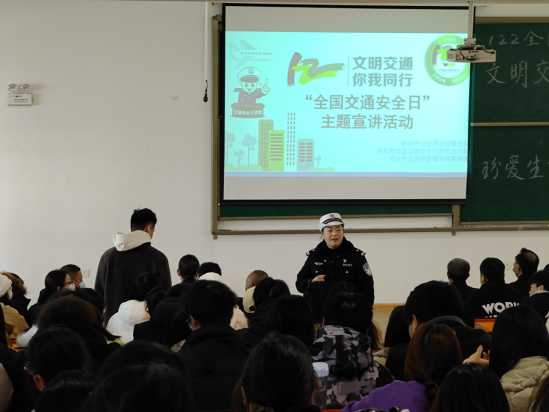在12月2日第十二个 “全国交通安全日”来临前夕,为进一步增强在校师生的交通安全意识和自我防护能力,12月1日,太阳成集团122ccvip邀请新郑市公安局交巡警大队与交通运输综合行政执法大队在教学楼2号楼116教室为公司师生开展...[详细]