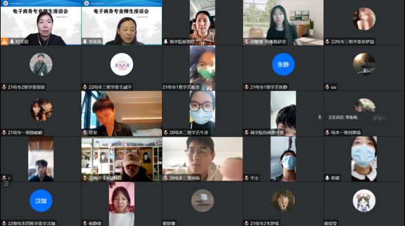 在近期疫情封控特殊时期,为了更好地服务电子商务专业员工,帮助各个年级员工顺利开展网络学习,太阳成集团122ccvip电子商务专业于11月17日下午2点在腾讯会议上举行了电子商务专业员工座谈会。出席本次会议的教师有商...[详细]